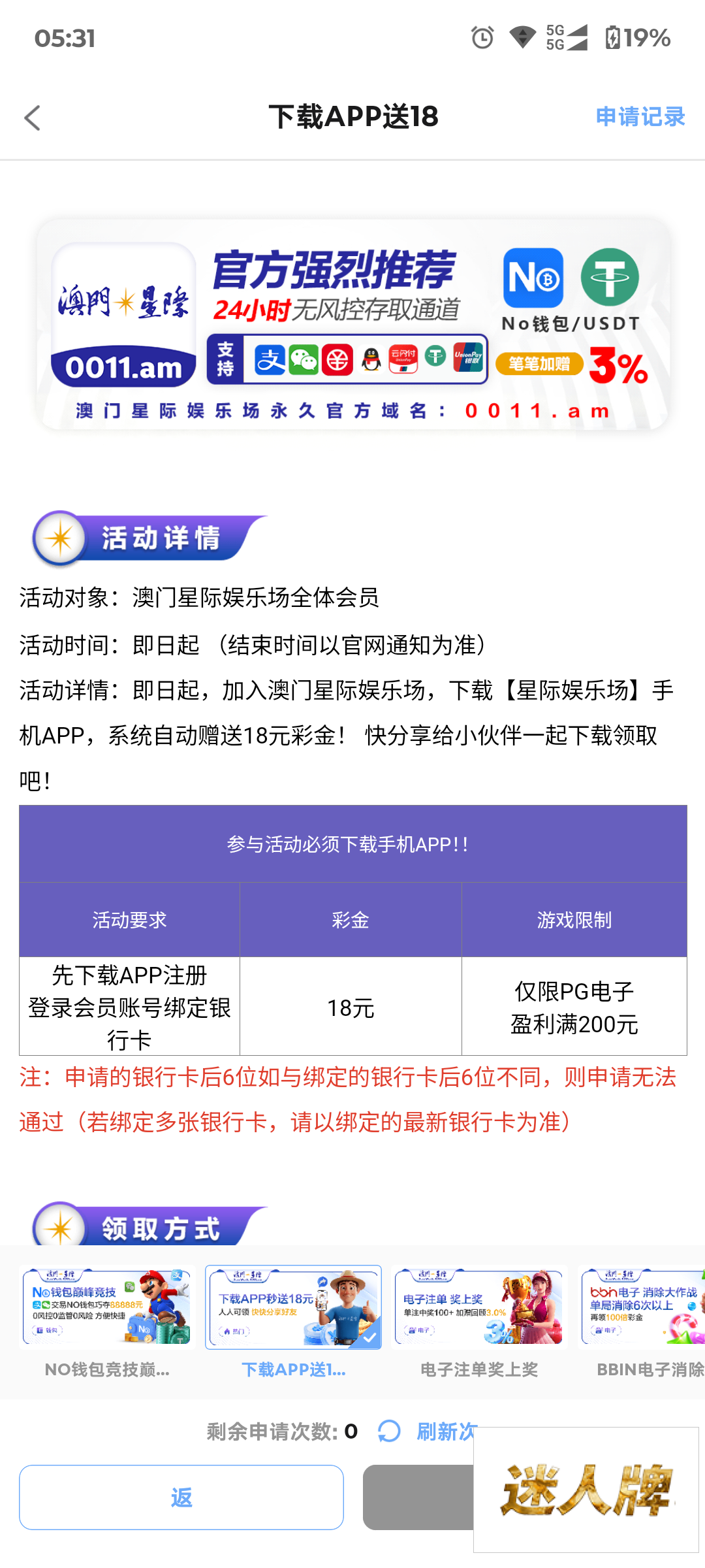 刚有老哥发自助的,活动有下载彩金链接0011.am