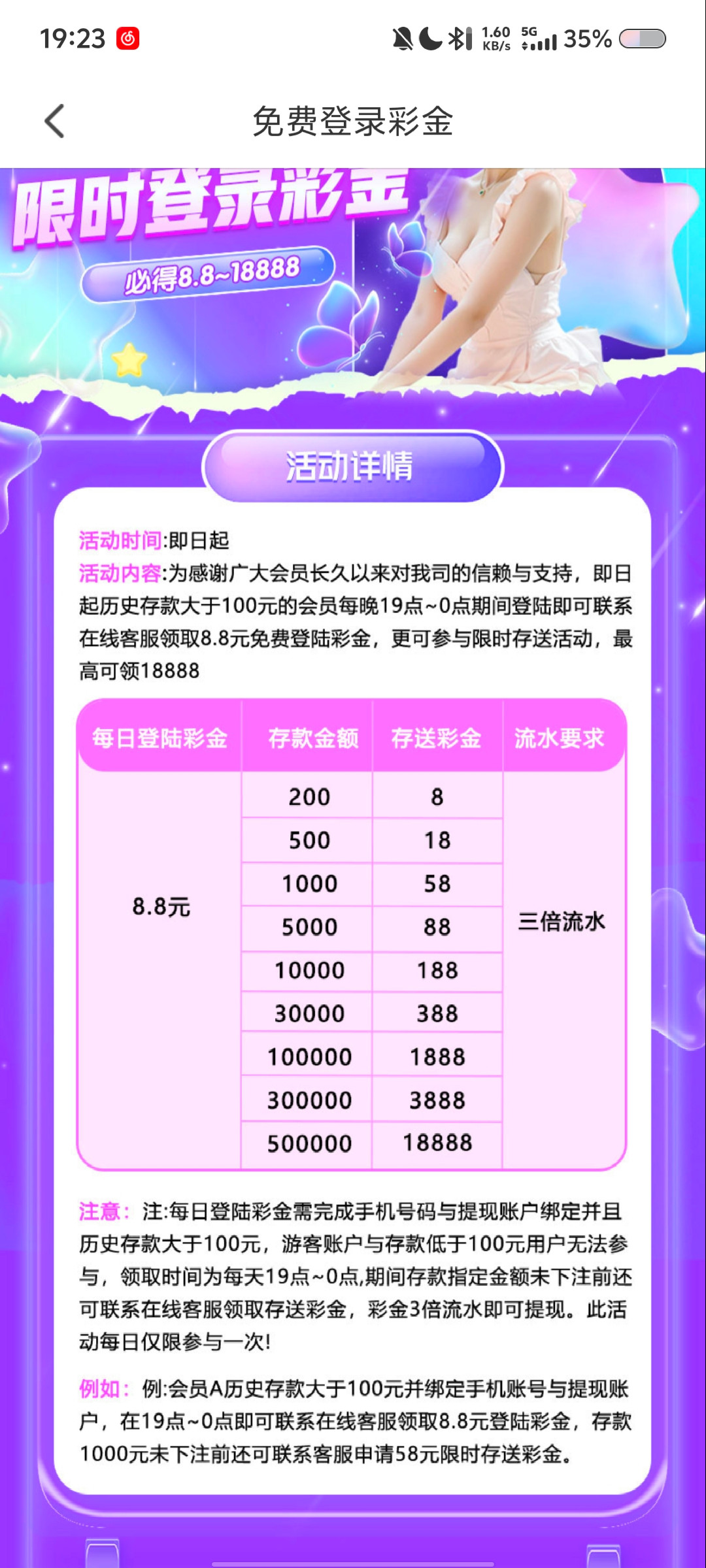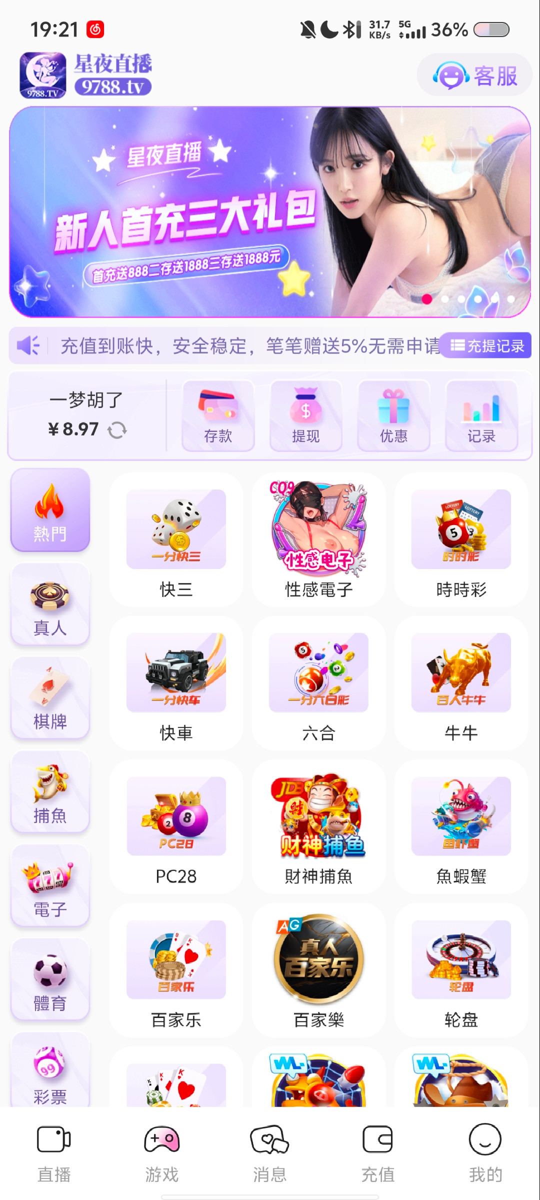 充值过100的可以去找客服领取8.8,不知道持续多久。官网链接 9788aa.vip