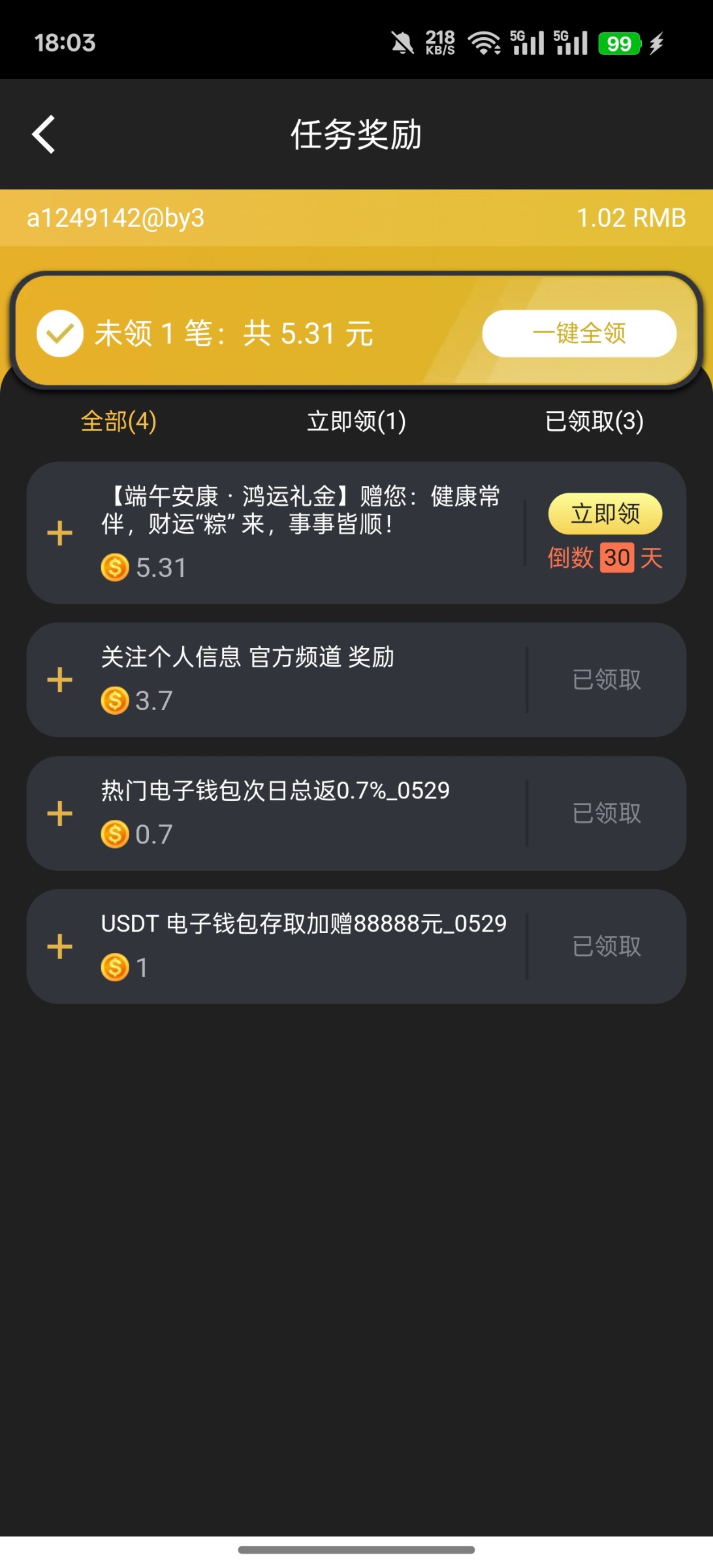前几天有人发的,下载app领58,然后我充了100,今天看到有端午彩金,有号的可以看看 地址 3003.com