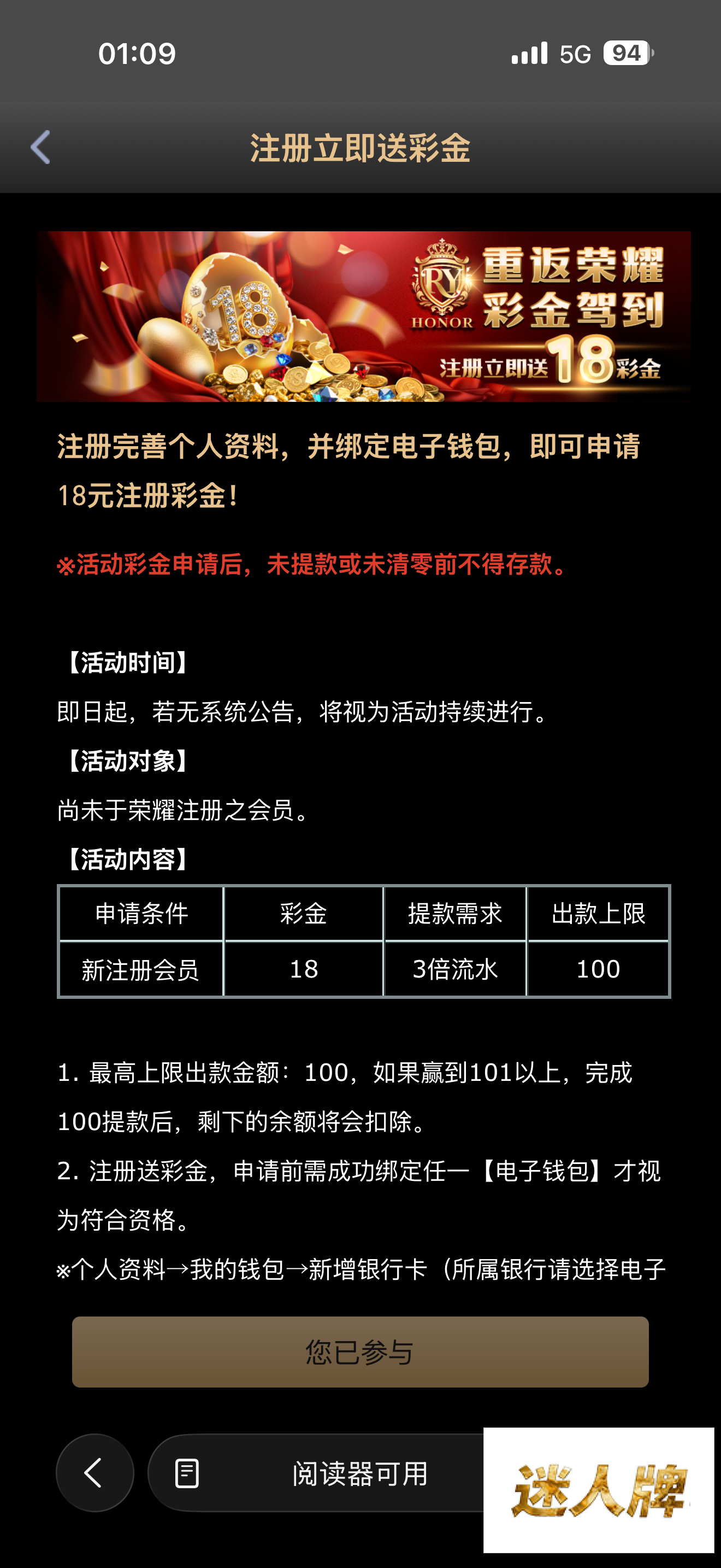 有号的无视,新会员去弄,随便绑定钱包,每天前100名,我12点过了申请的,登陆五分钟到的,18真人过三关,提一百到账了。不能玩电子! https://ryvip.cc/