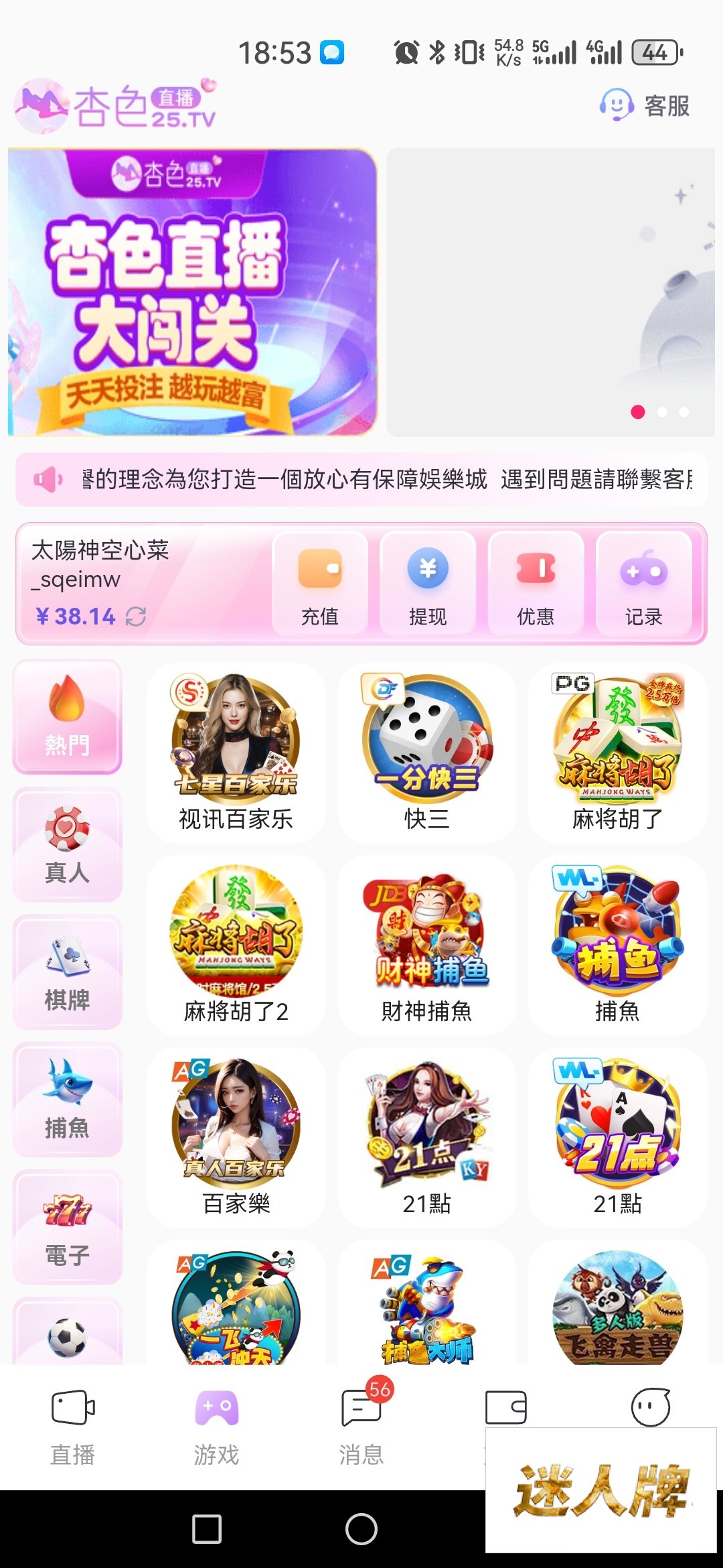 打电话来说登录送彩金,没接到的可以去碰一下,登录没到的话可以找下客服碰一下,有就有,没有就没有,网址25.tv