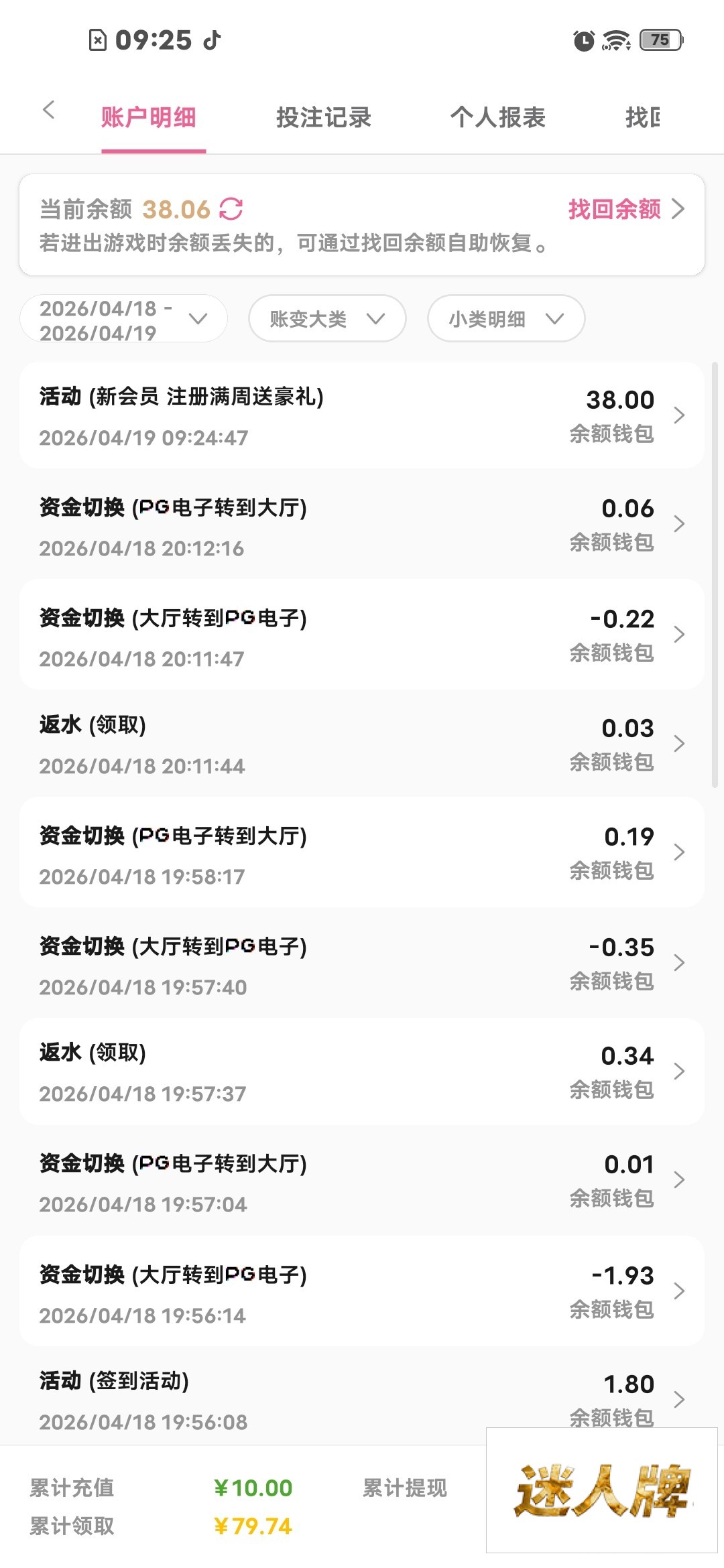 【百老汇0011-重复领取满周彩金】
