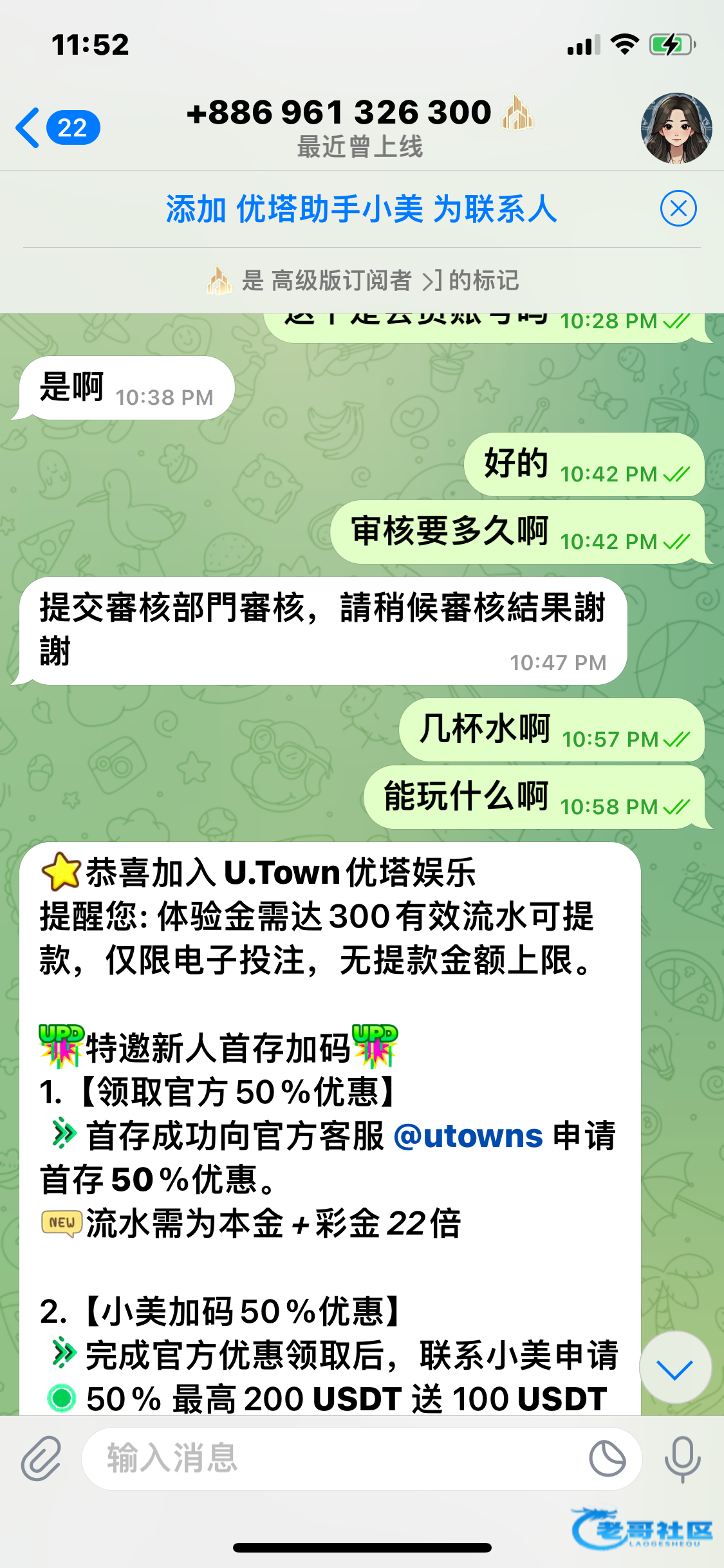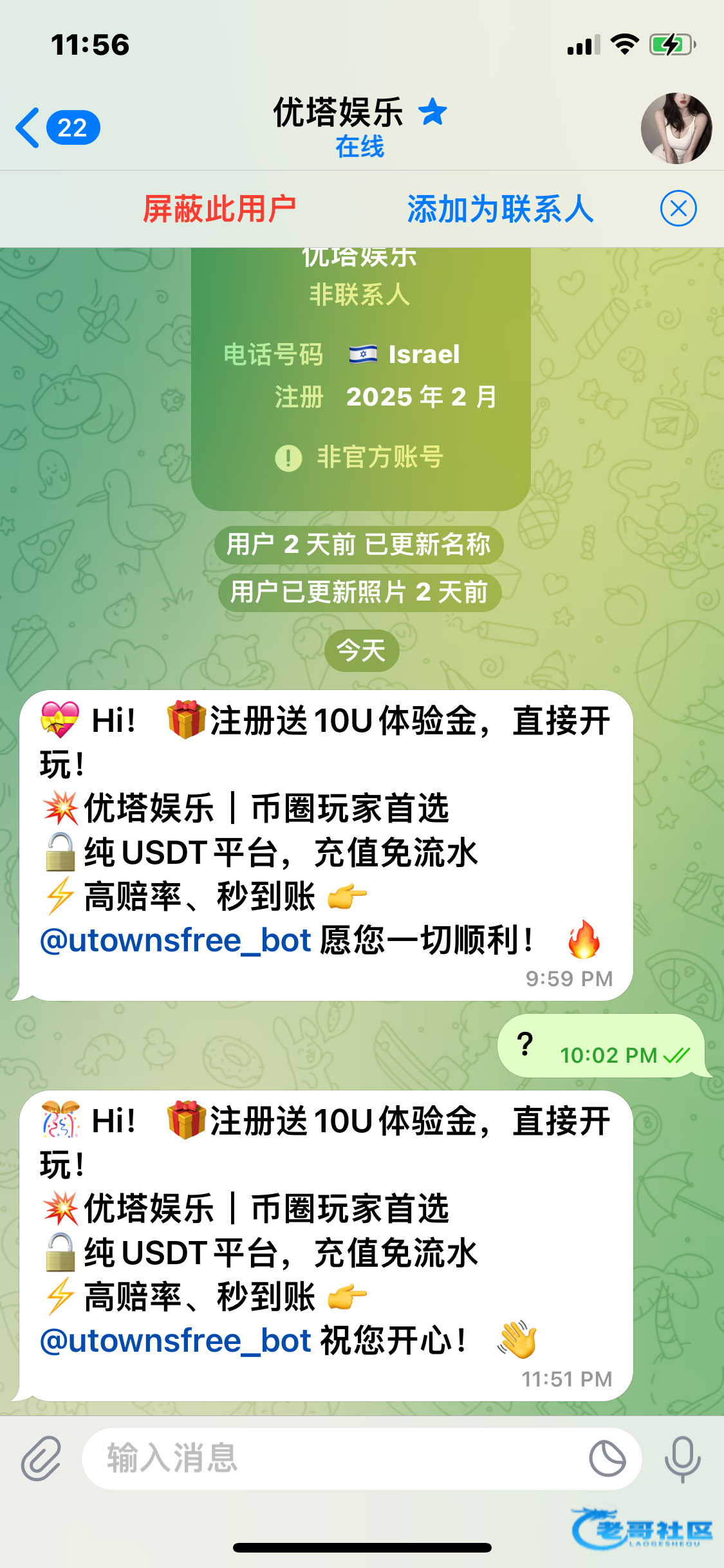 飞机上面送的,去频道里面搜百家乐打法,就有机器人给你发,也可以直接去找个那个客服,绑定usdt,送10u打到300流水可以提,我没打出来,其他频道不知道有没有  @ut86free 客服飞机号