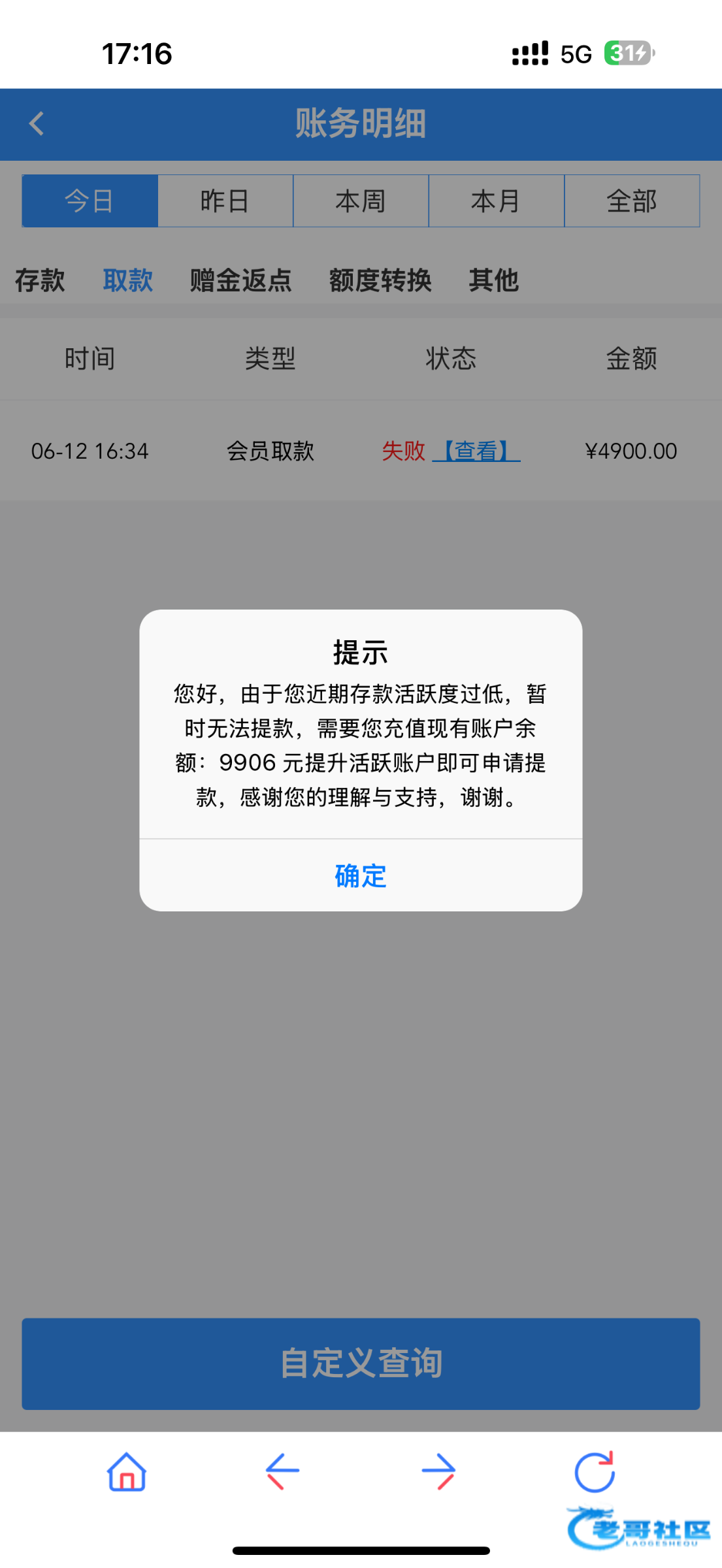 11号注册的,充了两次200,今天上午充了200,玩pp爆了1.5w,怕平台黑输到7000多提款4900,剩下2000多想着玩会百家乐,等4900提了,再提这笔,结果又赚了3000,账户加一起1w,让我充值1w才能提款,现在怎么办